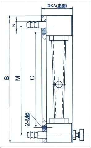 LZB玻璃轉子流量計錐管為光滑內壁,LZJ玻璃轉子流量計錐管有三條導向的凸筋。通徑DN10以下的流量計,采用軟管連接,并配有針狀流量調節閥;通徑DN15以上的流量計采用法蘭連接(JB78-59)。流量計的外形示意如下圖,